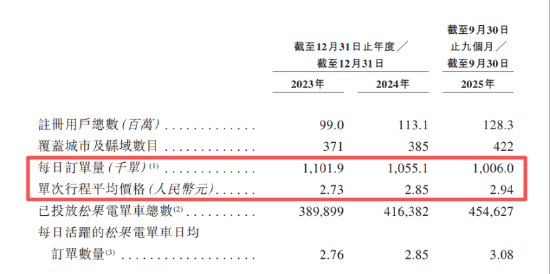逐日订单量逐渐减少之下,松果出行思要通过加价的形式来拉动收入增长。其单次行程平均价钱从2023年2.73元,涨至2024年的2.85元,2025年前三季度再涨至2.94元。
