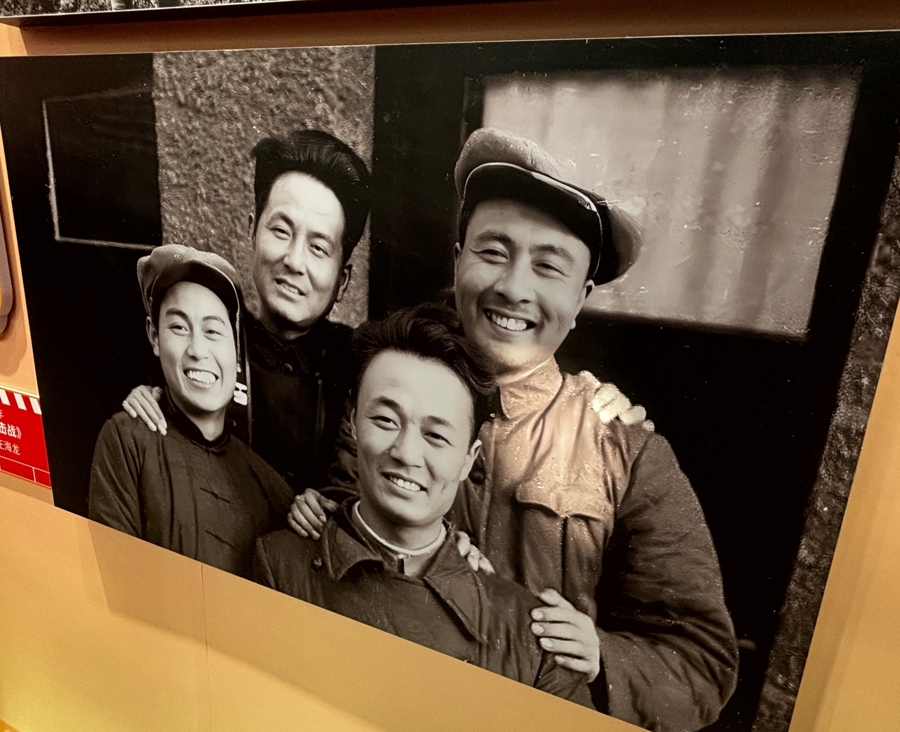 展览展出的电影《黑山狙击战》剧照,其中前排左一为张勇手饰演的王海龙。