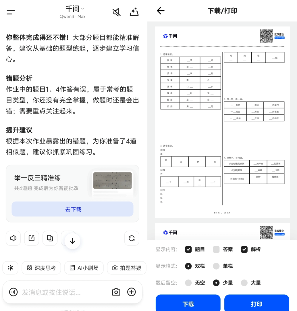 期末温习季莅临,AI技巧赋能教养鸿沟催生精确温习器具。1月8日,记者获悉,千问App上线“错题举一反三精确练”功能,成为又一“期末温习神器”。该功能能把柄学生错题生成千东说念主千面错题纯属册,可平直下载打印,为期末“减负增效”。目下该功能总共免费怒放,用户可无穷使用。
