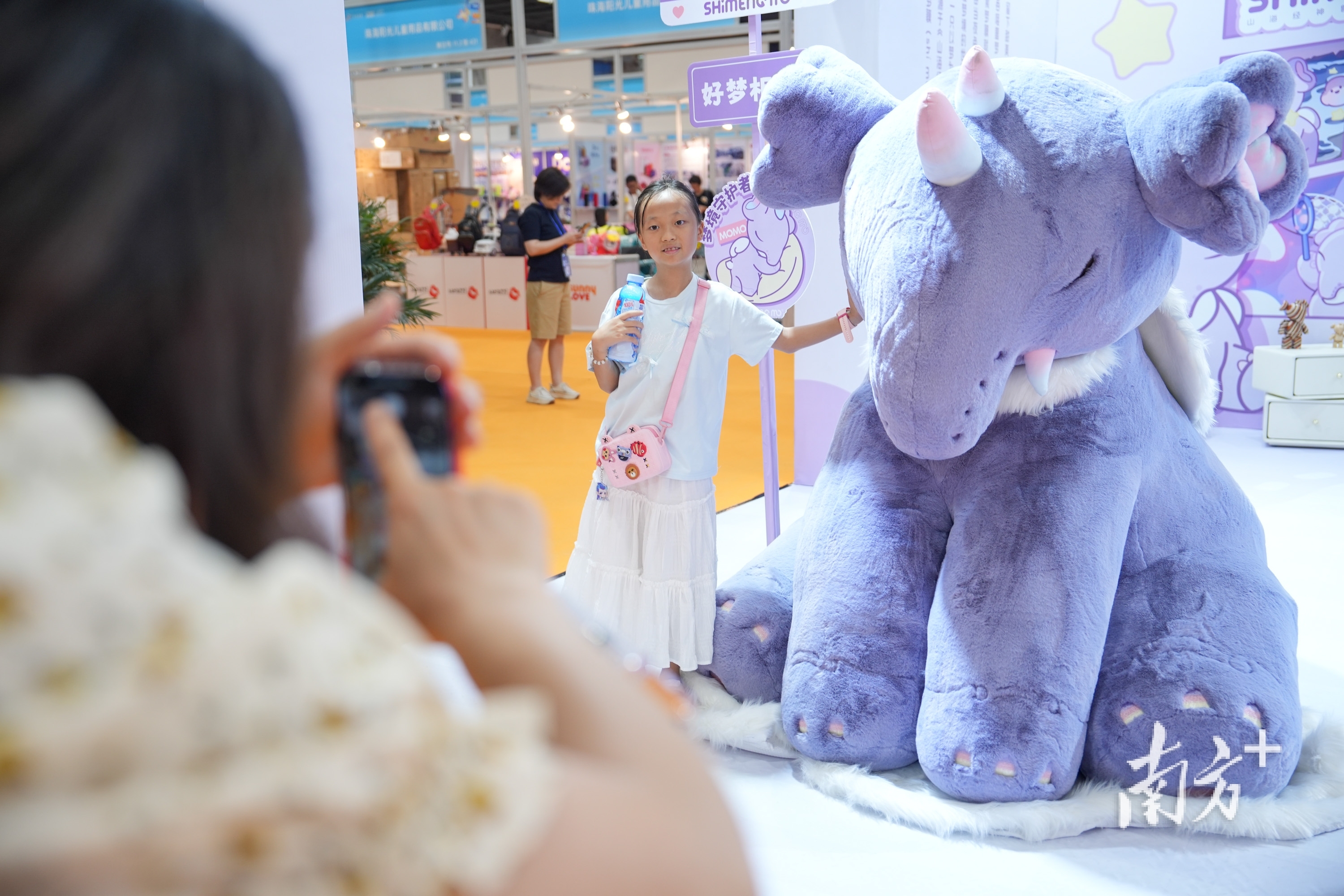 国潮山海经展位上,一只大型的食梦貘毛绒玩偶劝诱不雅众纷纷合影打卡。“它叫MoMo,是来自《山海经》的神兽,是咱们原创瞎想的IP。”国潮山海经文化产业(广东)有限公司行为认真东说念主蔡雅婷先容。展台C位胪列着本年新款“虚幻花语”系列玩偶,它赢得了2025 IP BANK年度十大潮玩奖,不少旅客现场下单购买。“咱们为广东优品展推出了特别的优惠,原价288元的玩偶在展会现场购买只需198元,但愿让更多心爱它的一又友不错把它抱回家。”蔡雅婷说。