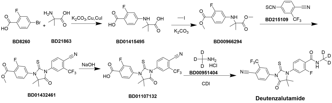 Deutenzalutamide Deutenzalutamide由海创药业股份有限公司研发,活性因素为氘恩扎鲁胺(Deutenzalutamide),商品名为海纳安,属于雄激素受体拮抗剂。适用于经受醋酸阿比特龙及化疗后出现疾病阐述,且既往未经受新式雄激素受体阻拦剂的转化性去势顽抗性前哨腺癌(mCRPC)成东说念主患者。获批时分为2025年5月29日。