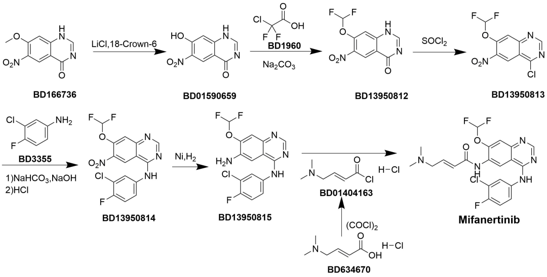 Mifanertinib Mifanertinib由杭州中好意思华东制药有限公司研发,活性因素为好意思凡厄替尼(Mifanertinib),商品名为迈瑞东,属于EGFR阻拦剂。适用于EGFR外显子21(L858R)突变的局部晚期或转化性NSCLC成东说念主患者一线诊疗。获批时分为2025年10月28日。