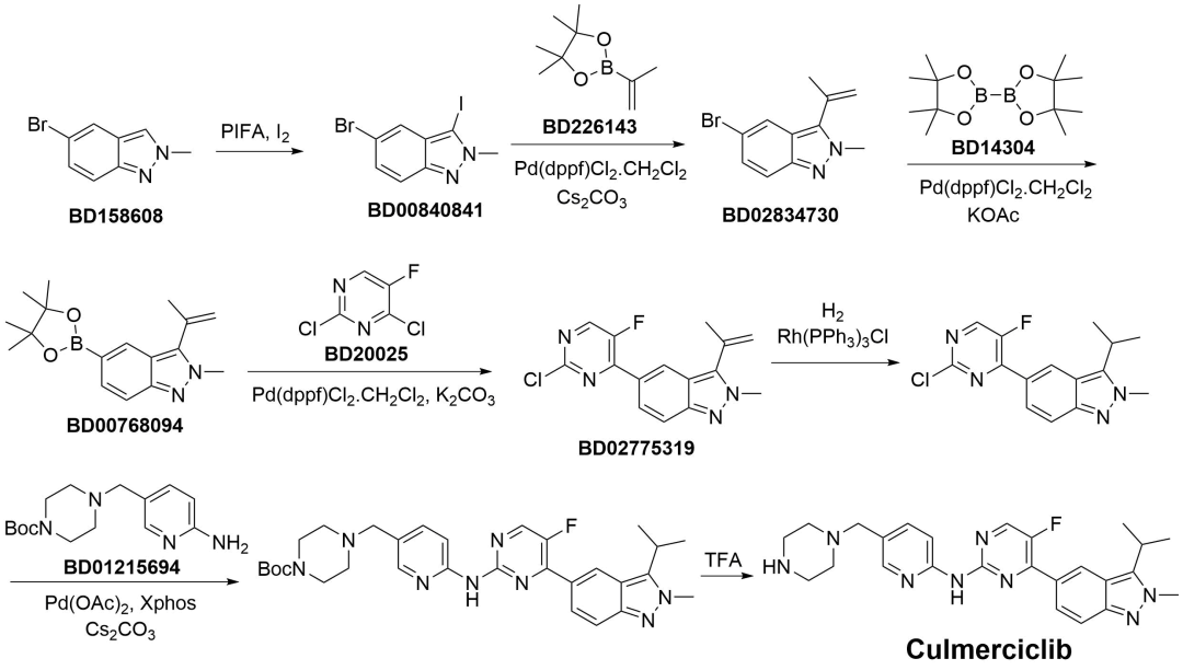 Culmerciclib Culmerciclib由高洁天晴药业集团股份有限公司研发,活性因素为库莫西利(Culmerciclib),商品名为赛坦欣,属于CDK2/4/6阻拦剂。谋划氟维司群用于HR+/HER2- 的局部晚期或转化性乳腺癌成东说念主患者。获批时分为2025年12月15日。