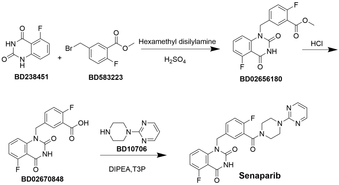 Senaparib Senaparib由上海英派药业有限公司研发,活性因素为塞纳帕利(Senaparib),商品名为派舒宁,属于PARP阻拦剂。适用于晚期上皮性卵巢癌、输卵管癌或原发性腹膜癌成东说念主患者在一线含铂化疗达到皆备缓解或部分缓解后的督察诊疗。获批时分为2025年1月16日。