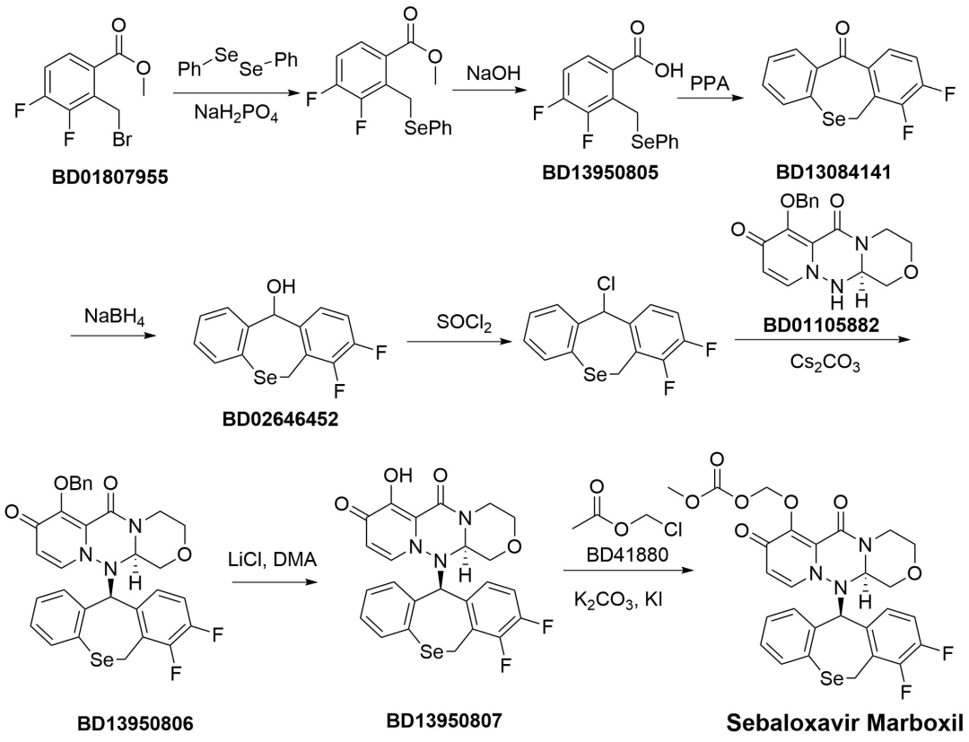 Sebaloxavir Marboxil Sebaloxavir Marboxil由南京征祥医药有限公司研发,活性因素为玛硒洛沙韦(Sebaloxavir Marboxil),商品名为济可舒,属于RNA团聚酶PA阻拦剂。适用于既往健康的成东说念主单纯性甲型和乙型流感患者的诊疗,不包括存在流感相关并发症高风险的患者。获批时分为2025年7月18日。