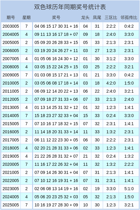 双色球历史同时奖号统计图