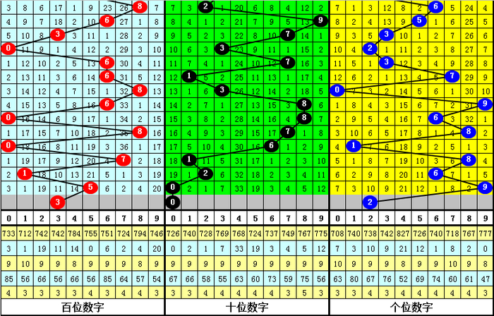 百位现在最冷号码为:9,刻下遗漏20期,该号码历史最大遗漏为54期,本期防百位9解冻;