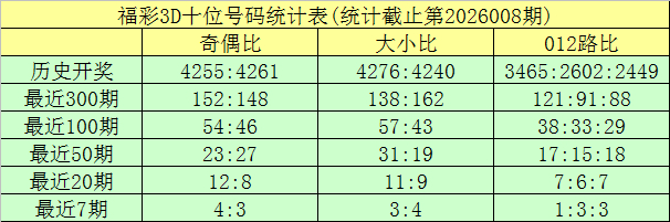 最近7期012路比开出1:3:3,0路号码开出较少,现时012路号码永诀遗漏:5期、2期和0期,本期十位看好2路号码出现。