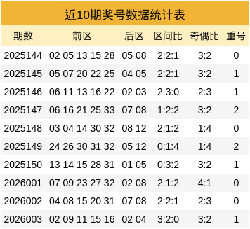 近10期前区的三区比为16:19:15,其中前2区出号数较多,3区前区出号数较少。上期前区三区比为3:2:0,1区前区施展较强。本期温存三区比1:3:1。