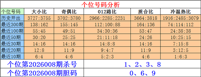 成列三个位第2026008期杀号:1、2、3、8