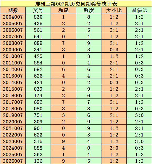 上期回顾:摆设三第2026007期奖号开出126。
