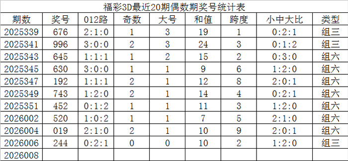 在以上号码中,号码3贯通活跃,开出了6次;号码2、4贯通较冷,开出了1次。号码奇偶比为17:13,奇数开出次数较多,本期包涵奇数再出;号码大小比为15:15,开出基本绝顶,本期包涵大号出现;本期通杀号码:2,胆码提倡:4。