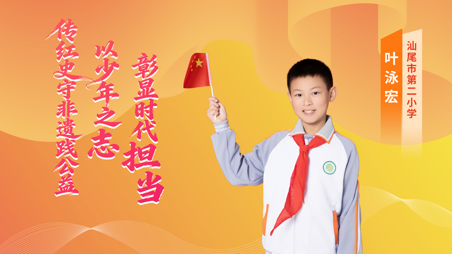 叶泳宏,男,汕尾市第二小学六年齿学生,汕尾市少工委委员。他品学兼优,全面发展,曾荣获寰宇“红围巾奖章”个东说念主五星章、广东省“红围巾奖章”个东说念主四星章。他积极投身生态确立,获评广东“绿好意思小卫士”、汕尾“绿好意思小使臣”称呼,并获评汕尾市新时间好少年。在校技术,他屡次荣获“优秀少先队员”“三好学生”“优秀队干”“百名好少年”等荣誉称呼。2025年入选广东“新时间好少年”先进功绩发布名单。