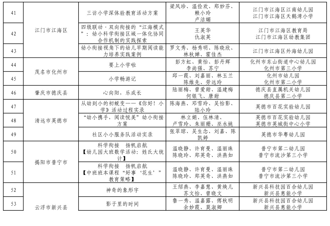 阐述《广东省锤真金不怕火厅对于作念勤学前锤真金不怕火高质料发展实践区结项职责的奉告》条目,经名目自评、地市复核、省级评审、公示等形态,省锤真金不怕火厅完成了2021年立项的2个安吉游戏国度级名目、46个省学前锤真金不怕火高质料发展名目(21个幼儿园与小学科学衔尾名目、25个幼儿园岭南自主游戏名目)结项职责。同期,流程对名目结项材料审核,这次共评比出幼儿园与小学科学衔尾典型案例69个、幼儿园岭南自主游戏典型案例70个供各地学习模仿。