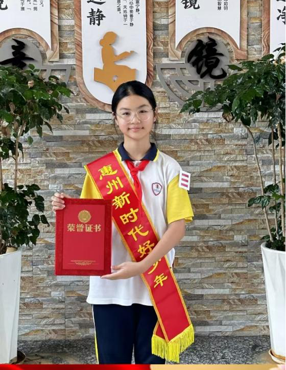 此外,她在惠州市“法律伴我成长”演讲比赛、淡水街谈课文诵读比赛中亦屡获佳绩,全面展现了别称新时期少年“腹有诗书气自华”的文化底蕴与艺术才华。