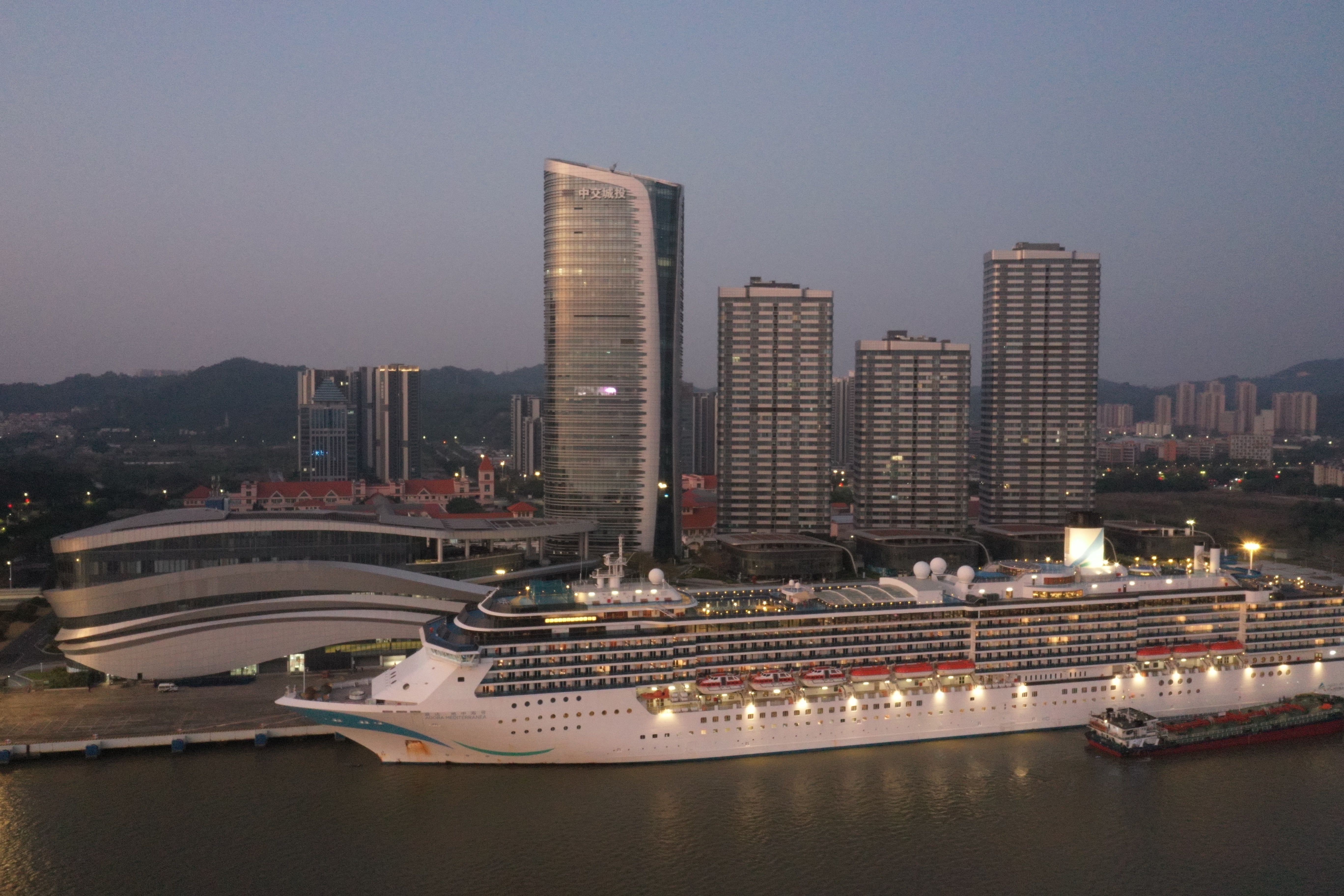 1月7日黎明,爱达·地中海号抵达广州南沙邮轮母港。 受访者 供图