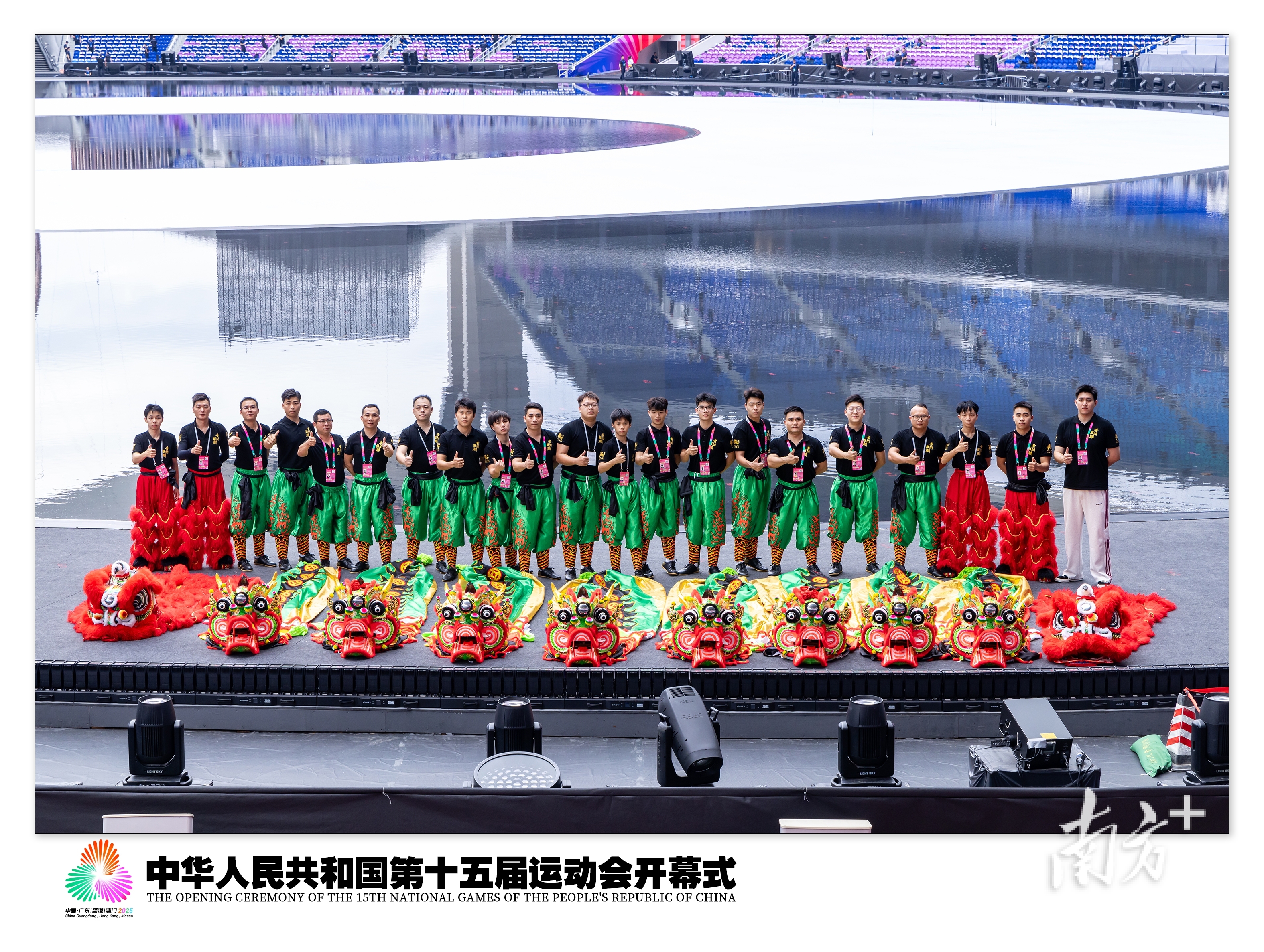 黄阁麒麟舞团队在十五运会开幕式排演后台