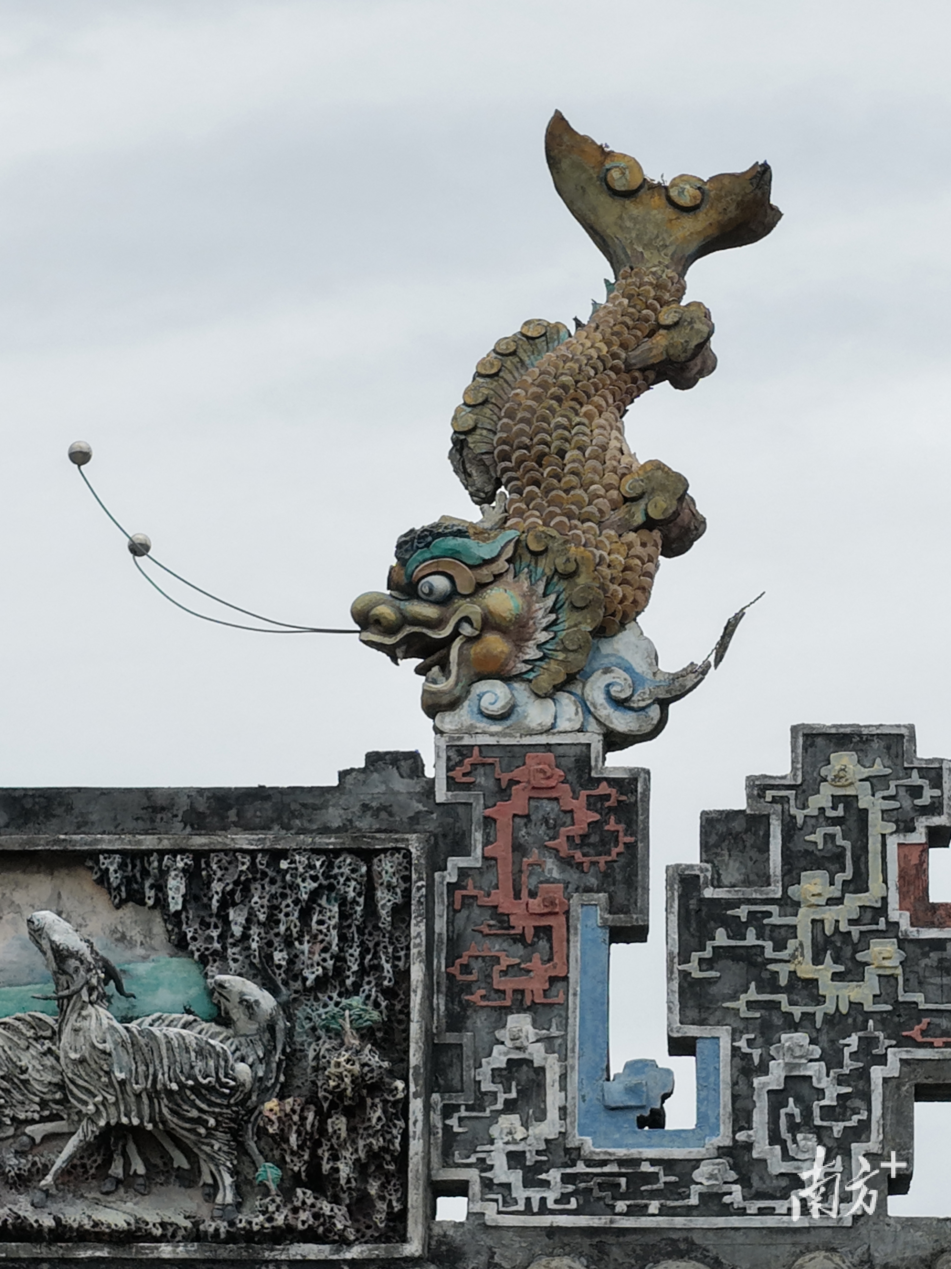 龙头鱼身的鳌鱼,相传是“鲤跃龙门”化身而成,兼具龙的威严与鱼的灵动。自古以来,它即是广府东谈主家“看家护宅”的保护伞。常言谈:“不见尾不见尾”,鳌鱼却总爱翘起高高的尾巴,安身在建设的瓦脊、房梁、斗拱之间。