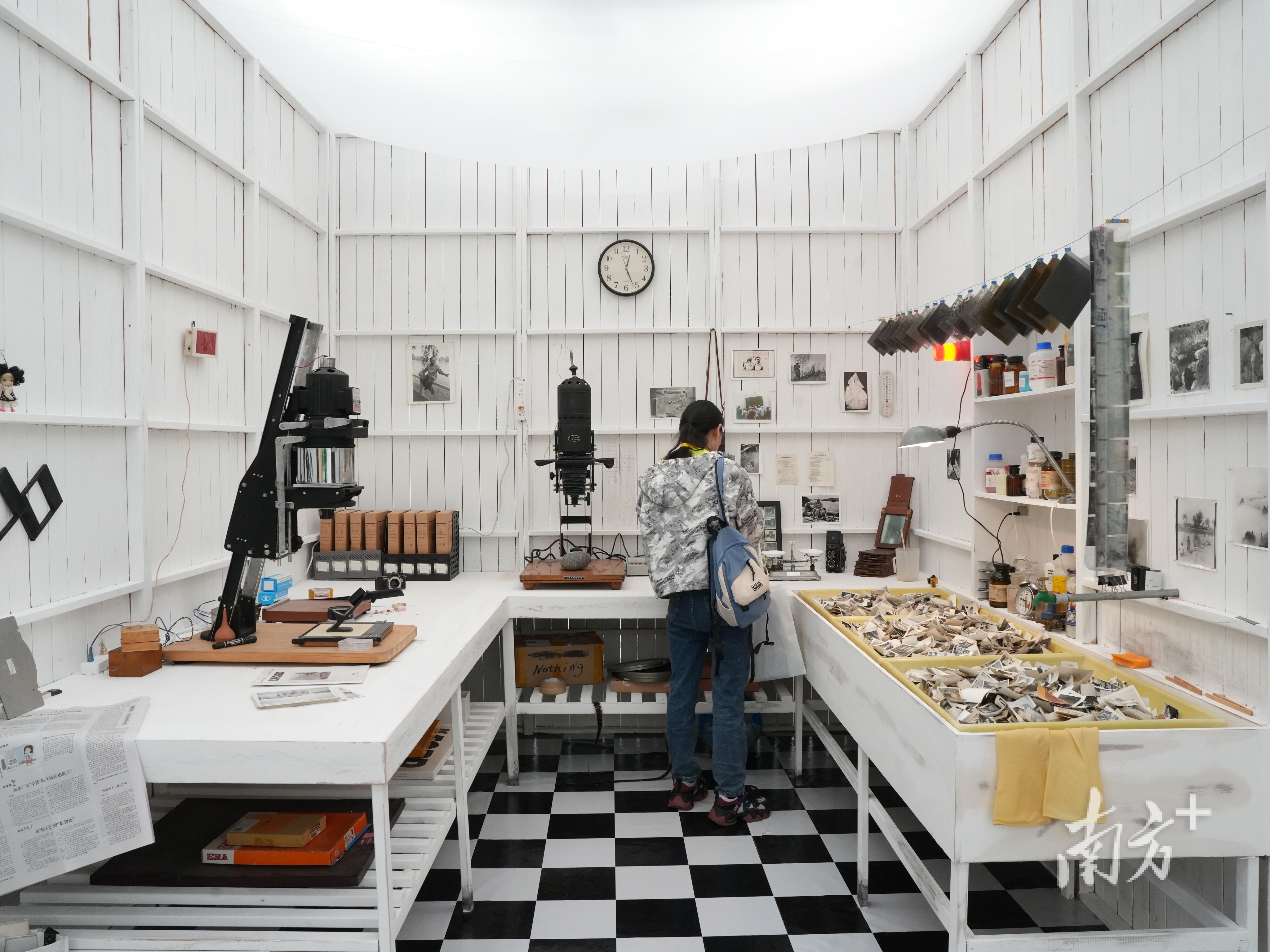 中国影相家蔡东东花了快要4个月时分,1:1将传统影相创作的暗房复刻到展览现场,为不雅众“零距离”规复影像作品的出身经过。