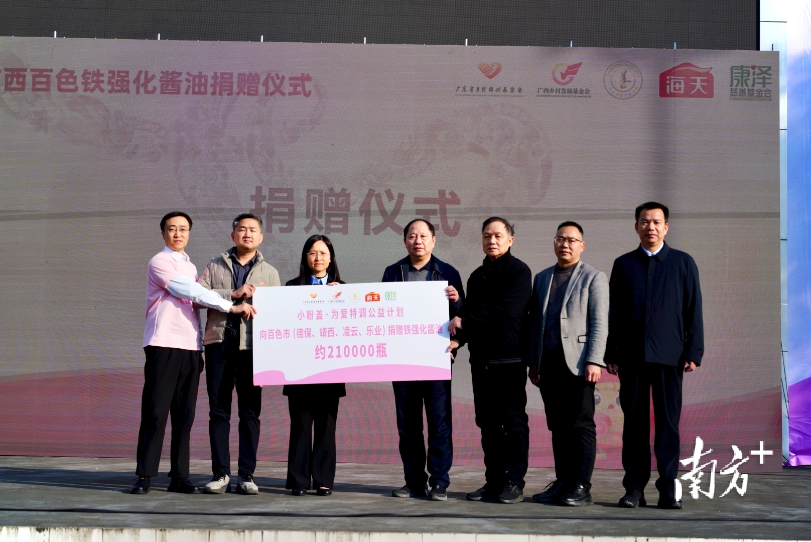 2025年,基于国度关联部门的评估与扶植,海天味业与康泽基金会决定进一步在百色市扩大名目粉饰面,让更多学生得到科学补铁扶植。活动本日,广东省乡村振兴基金会、海天味业、康泽基金会的代表,将记号爱心的捐赠牌,递交给广西乡村发展基金会、百色市训练基金会及学校代表手中,确保每一瓶“小粉盖”居品齐能精确投递学校食堂。