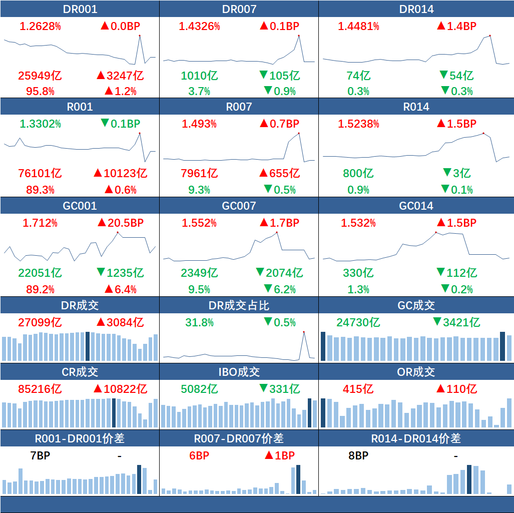 货币商场资金面平衡偏松。本日成交85216亿元。DR001加权1.26%,较前日基本握平,DR007加权1.43%,较前日基本握平。