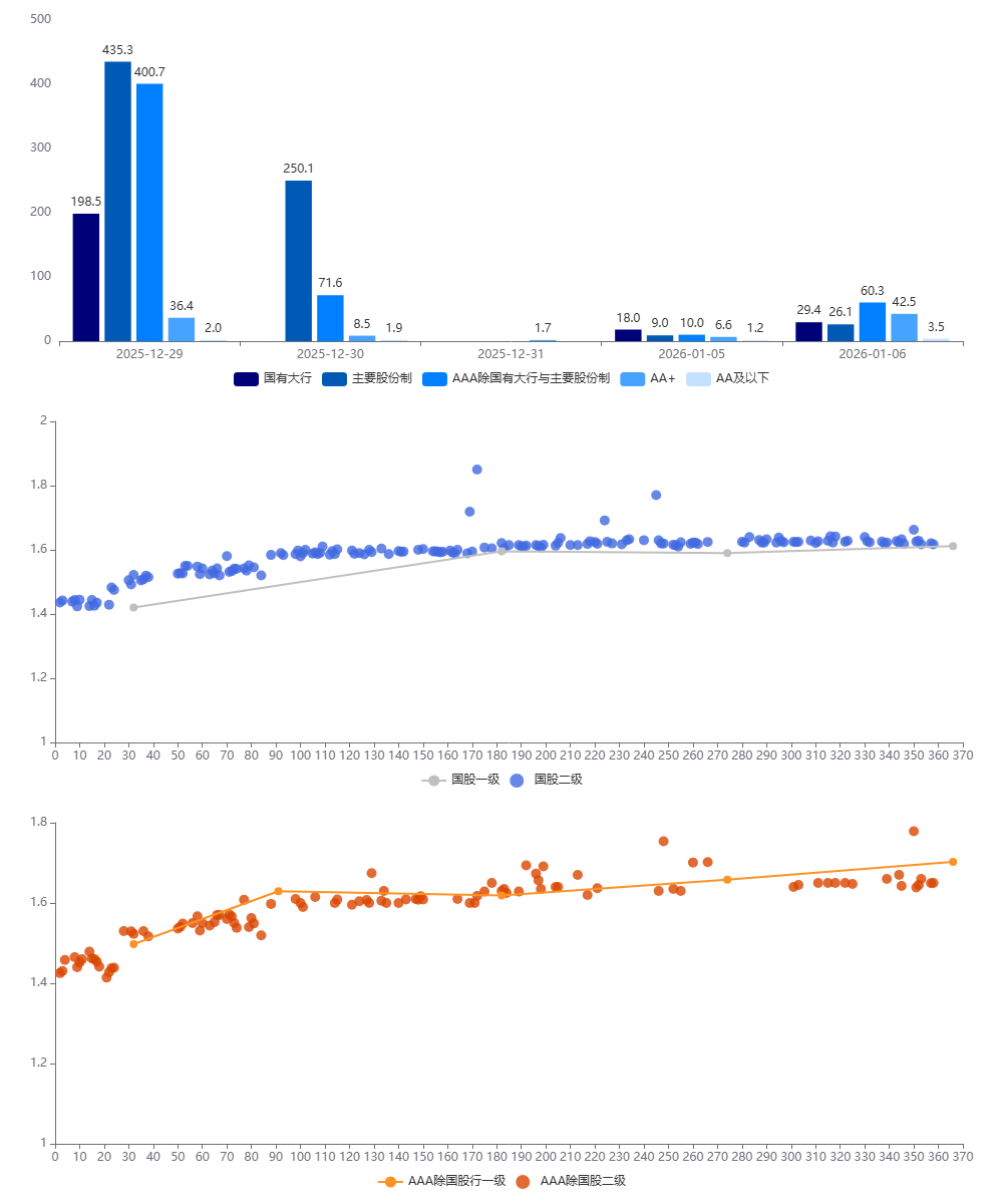 隔夜、1个月、3个月Shibor诀别报1.263%、1.569%和1.596%,诀别较前下行0.1BP、下行0.5BP和握平。
