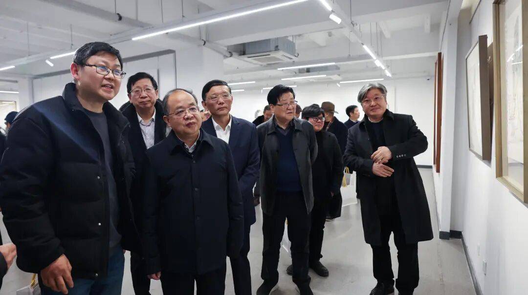 江苏省字画家联谊会参谋人、江苏省文史参谋馆字画院院长、民进江海字画会会长萧平,江苏省文化馆党总支文书、馆长,江苏省非物资文化遗产保护中心主任赵彦国,江苏字画家联谊会副会长、江苏省国画院艺术委员会原副主任徐建明以及理事代表郑长安、郭列平、卢立彬、场所军、王野翔、高德星、赵晓中、王国斌、晏明、谭雷鸣、袁景、张冰、贾明哲、尹苏桥;南京大学党委统战部常务副部长罗萍,南京大学国际化服务处(台港澳事务办公室)副处长蔡丹丹,南京大学艺术学院副院长尚荣以及艺术学院参展西宾代表刘德龙、朱琪、任艳明、李岩、李凤志、王静、褚悦、马武周等出席开幕式。