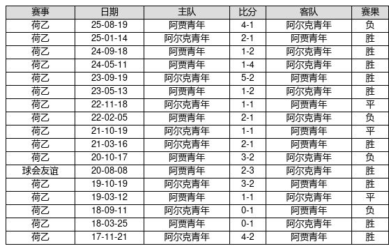 阿尔克后生 VS 阿贾后生两队近10年的交战次数为17场,阿尔克后生10胜3平4负,赢球概率为58.8%,平局概率为17.6%,输球概率为23.5%。