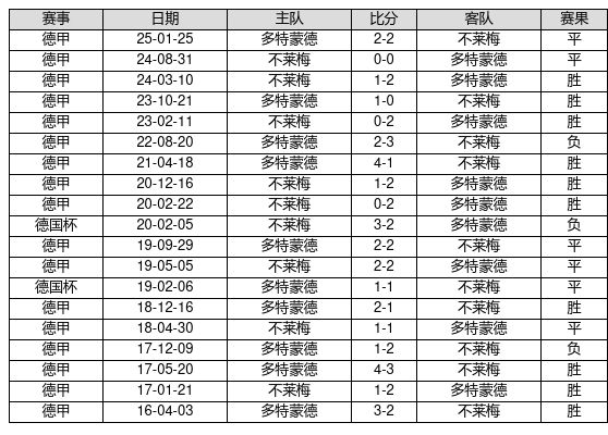 多特蒙德 VS 不莱梅两队近10年的交战次数为19场,多特蒙德10胜6平3负,赢球概率为52.6%,平局概率为31.6%,输球概率为15.8%。