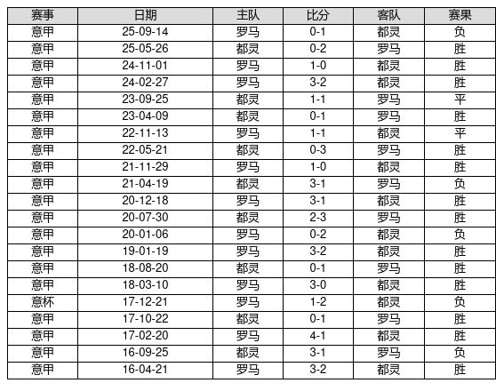 罗马 VS 王人灵两队近10年的交战次数为21场,罗马14胜2平5负,赢球概率为66.7%,平局概率为9.5%,输球概率为23.8%。