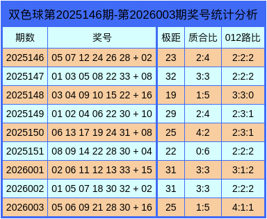 上期回想:双色球第2026003期回想:红球05、06、09、21、28、30 + 蓝球16。