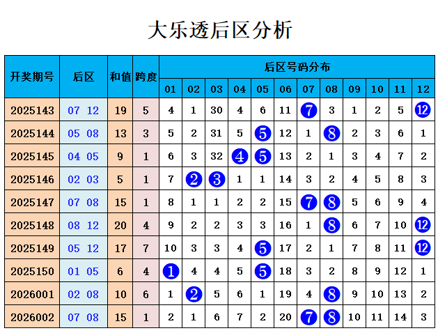 前区2路分析:前区2路号码上期开出2个号码08、20,前十期断区1次,前十期2路号码开出15个号码,走势较冷,本期看好2路号码走势保握,本期看好出2个2路奖号,顺心号码:02、14