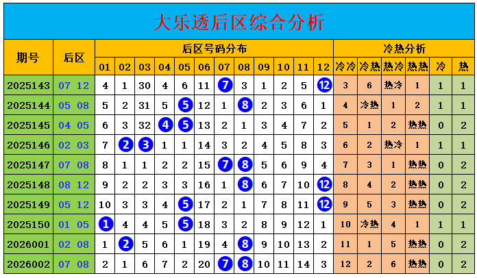 上期归来:大乐透第2026002期:前区04、08、15、20、31,后区07、08,前区奖号和值为78,三区比为2:2:1,后区开出热热组合07、08
