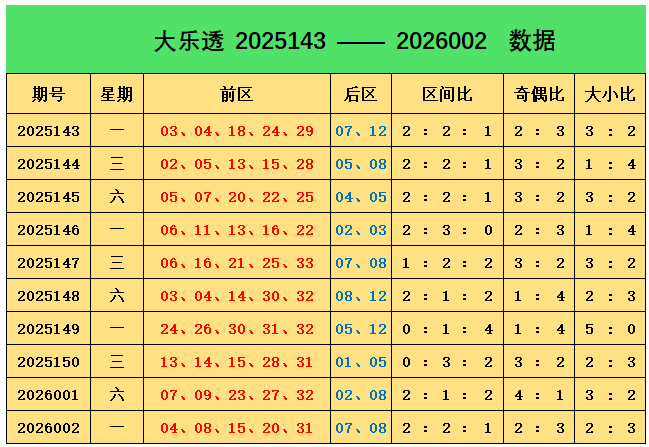 上期清雅:大乐透第2026002期奖号为:前区04、08、15、20、31,后区07、08,前区奖号三区比为2:2:1,奇偶比为2:3,大小比为2:3,后区开出大大组合07、08