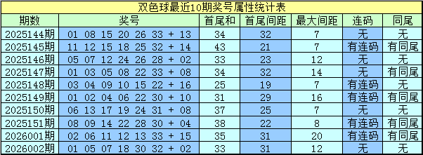 上期开奖:福彩双色球第2026002奖号为:01 05 07 18 30 32 + 02,红球和值为93,最大间距为12,奇偶比为3:3,三区比为3:1:2。