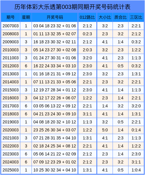 积年第2026003期大乐透数据统计表